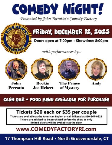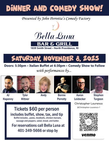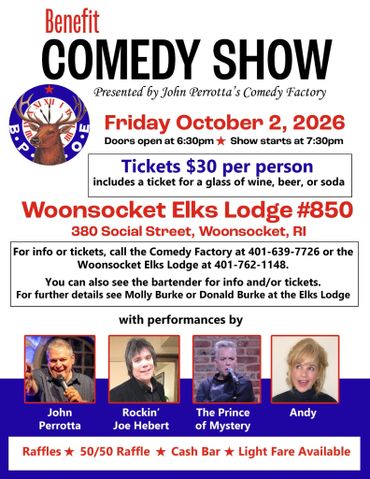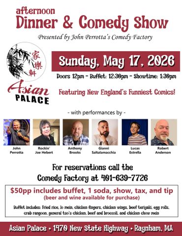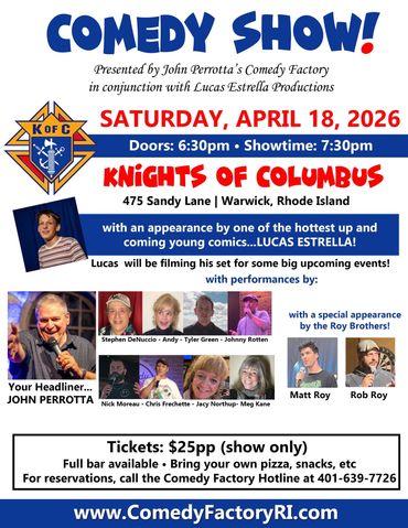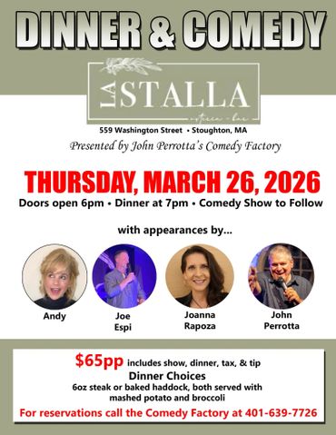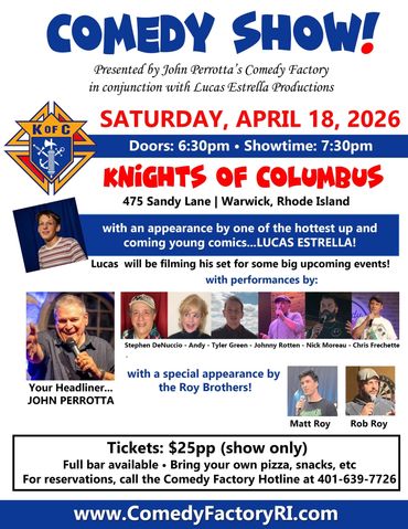 John Perrotta's Comedy Factory has been entertaining audiences throughout New England for 31 years. Comedy shows with top New England Comedians!