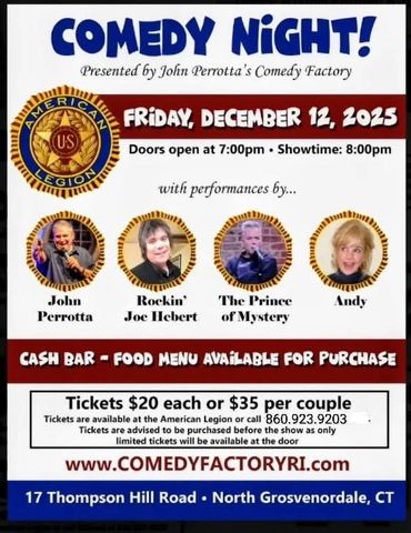 John Perrotta's Comedy Factory has been entertaining audiences throughout New England for 31 years. Comedy shows with top New England Comedians!